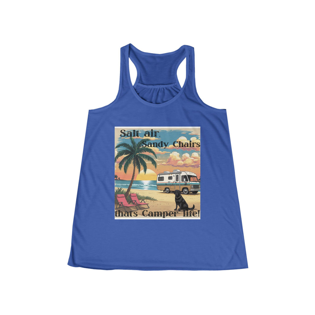 Salt air Sandy Chairs that's camper life! Women's Flowy Racerback Tank